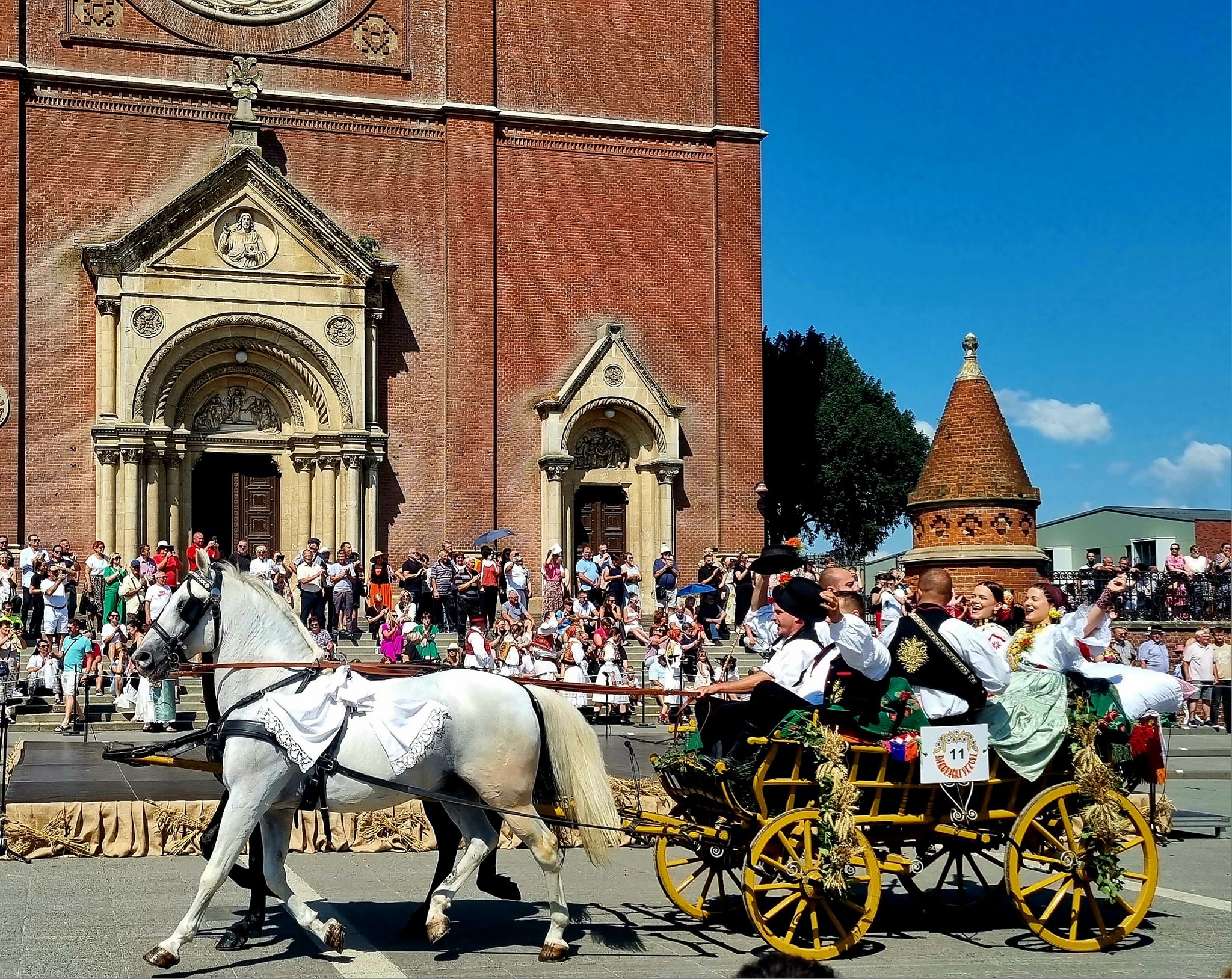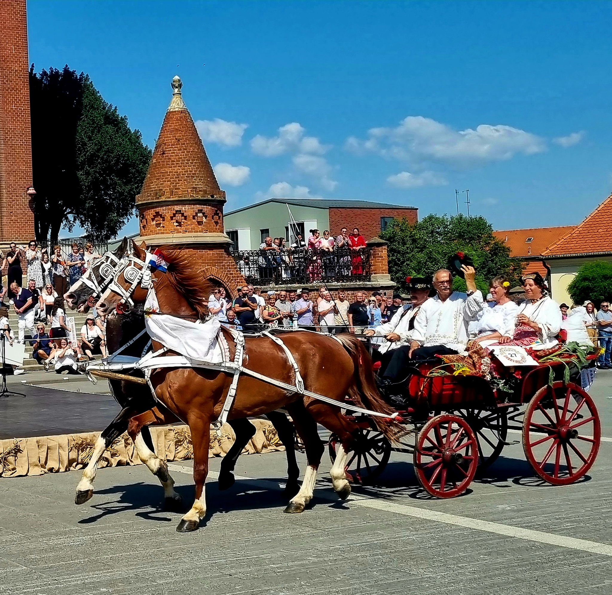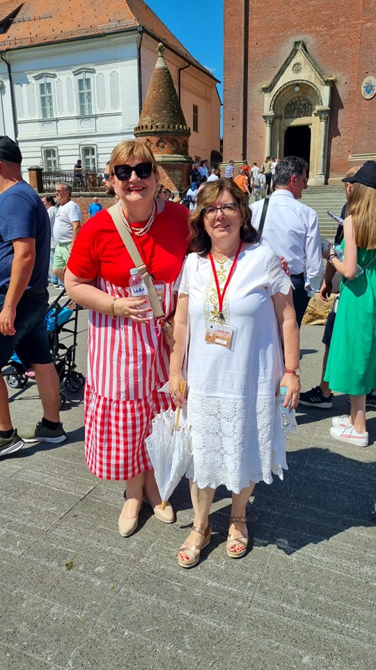 U Svečanoj povorci sudionika 57. Đakovačkih vezova sudjelova je predsjednica udruge Dijana Katica. U defileu su sudjelovale 53 folklorne skupine i oko 2500 folkloraša iz Hrvatske te više država (Sjeverna Makedonija kao zemlja partner, Meksiko, iseljeničke skupine iz SAD-a te Bosne i Hercegovine). Nakon prolaska folklornih skupina uslijedio je prolazak 40 svatovskih zaprega te preko 50 jahača i jahačica.