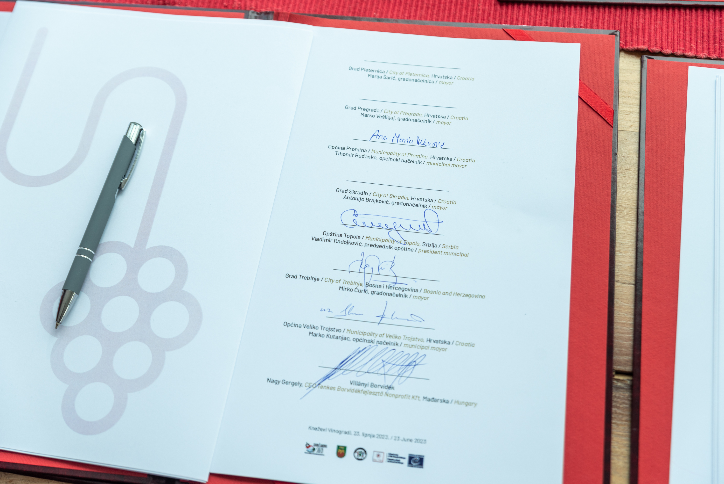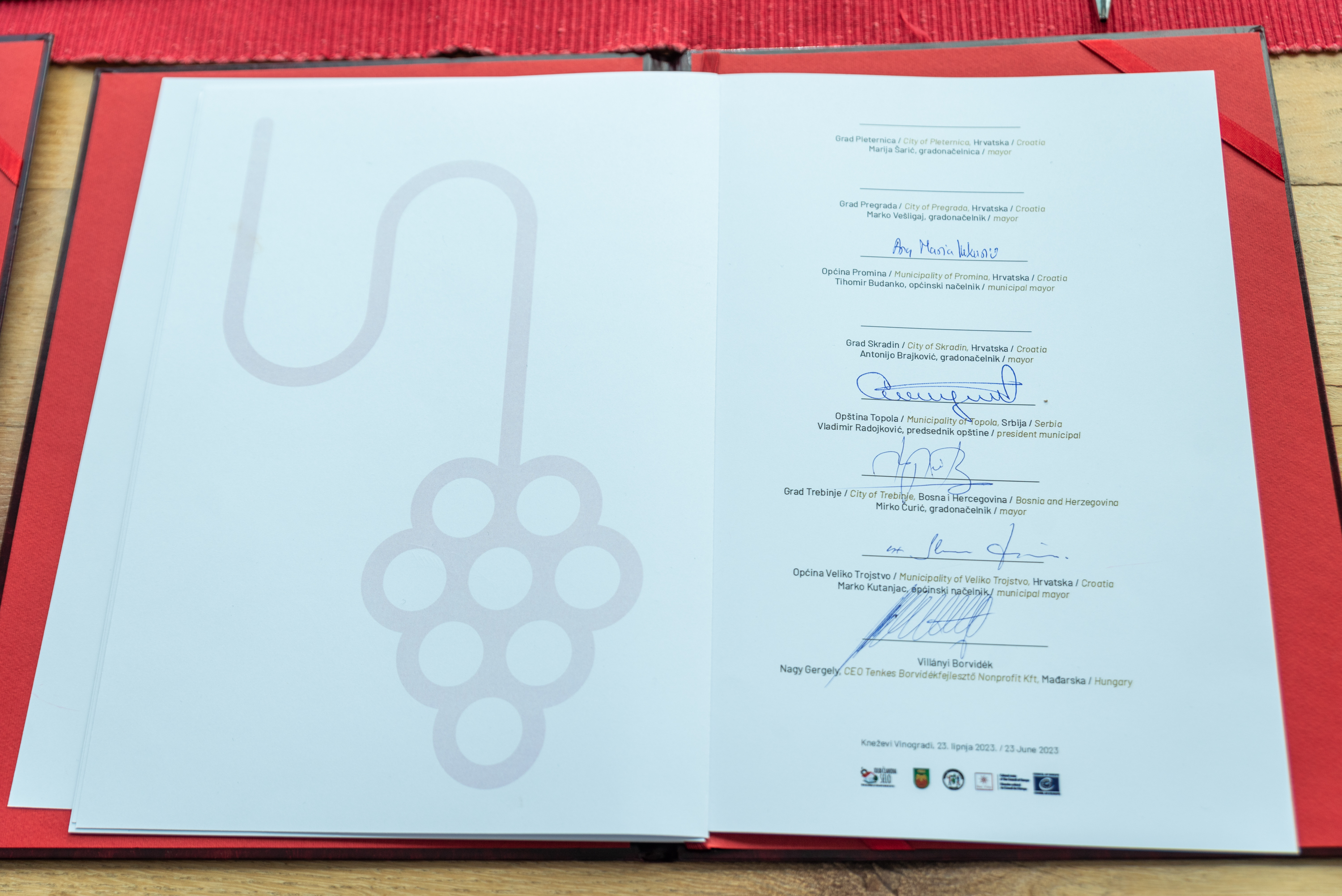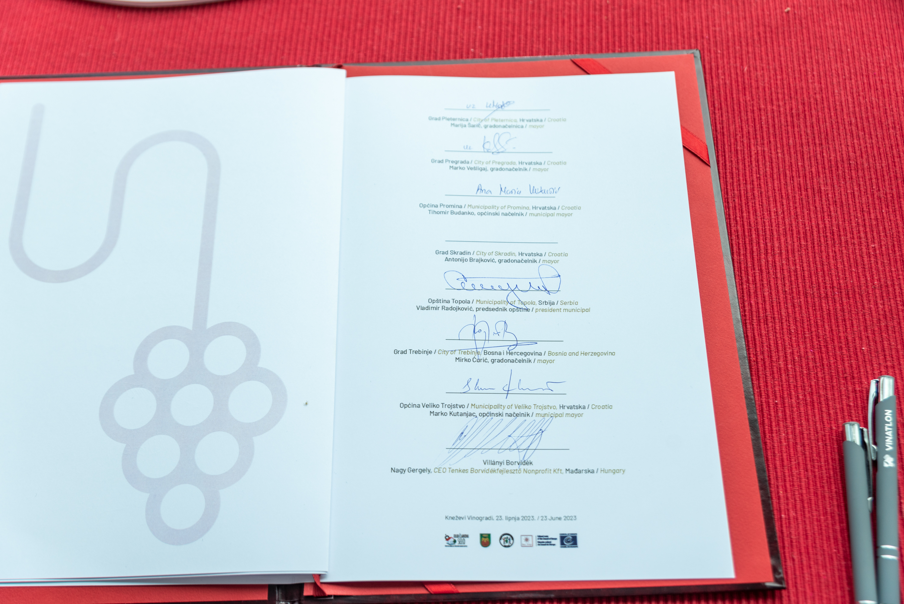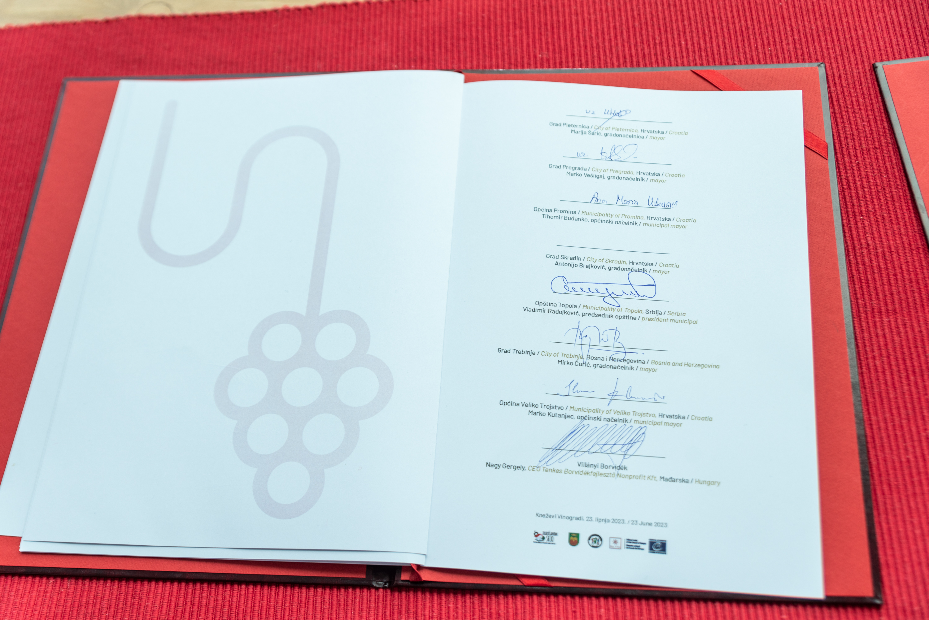 Vinari, vinski stručnjaci, turistički djelatnici, ugostitelji, novinari i predstavnici gradova, općina i institucija iz Hrvatske i susjednih zemalja, nazočili su svečanosti potpisivanja Povelje o suradnji vinskih destinacija te panelima na temu vina i turizma, destinacije i baštine. Povelju su potpisali predstavnici 25 jedinica lokalne uprave i turističkih zajednica, iz svih gostujućih država, no interes za pridruživanjem je vrlo velik te ćemo u budućnosti vidjeti nove potpisnike zainteresirane za suradnju i razmjenu iskustava.